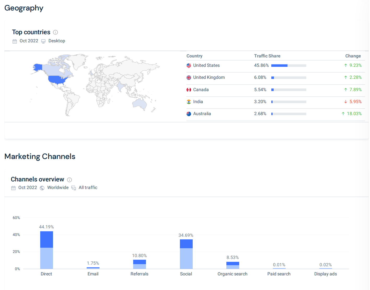 Ever been interested in how your competitors acquire their customers? What part of the world do these customers come from? What are they typing into Google to find your competitors? What about which social channels their customers are coming from?